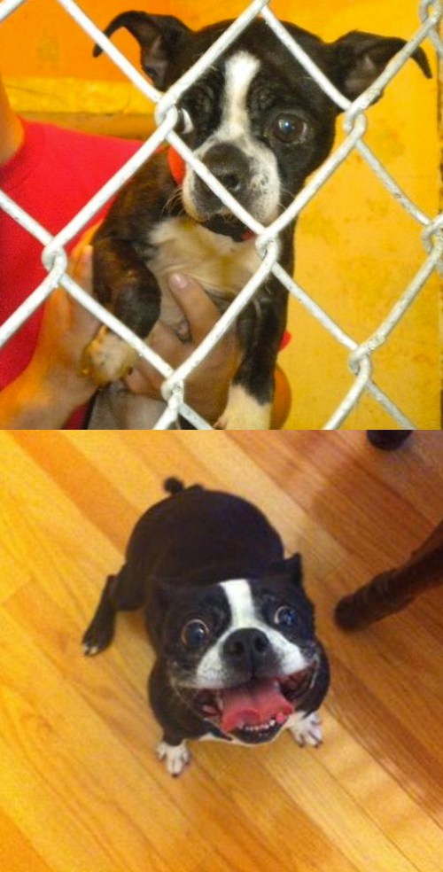 Fyrir-og-eftir myndir af hundum sem átti að lóga