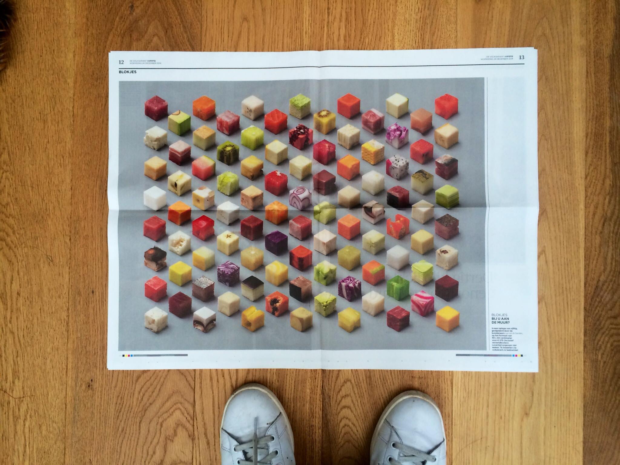 Listaverkið unnu þeir félagar fyrir hollenska dagblaðið De Volkskrant, en ritstjóri fór þess á leit við tvíeykið að þeir félagar hönnuðu ljósmyndaverk við heimildarseríu sem birtist í blaðinu og bar yfirheitið MATUR. Úr varð súrrealískur matargjörningurinn sem minnir mest á máltíð geimfara; 98 fullkomnir teningar af óunnum matvælum, allir 2.5 cm x 2.5 cm x 2.5 cm.