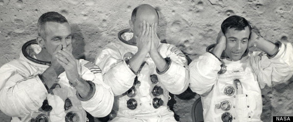 Áhöfn Appolo 10; þessi karlmenni vita sem víst er að holdris úti í geimi er næstum ómögulegt
