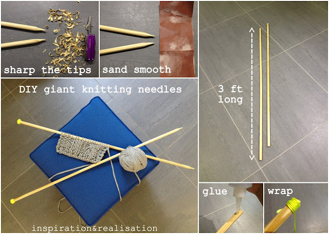 Frúin veit jú ekki allt – svo hún bara spyr! Kannski er hægt að handgera svona risaprjóna. Trítla bara í næstu byggingarvöruverslun og spyrja hvort strákarnir þarna á lagernum eigi ekki rúnnaða trésívalninga. Í metravís. Sem hægt er að saga niður og slípa svo á köntunum. Frúin er jú forvitin! Hvað með ykkur?