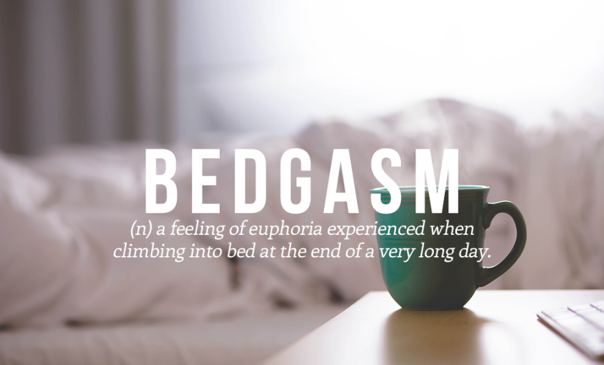 Oh. Þetta kannast frúin agalega vel við. Þessi dísæta tilfinning þegar þungir skórnir detta af þreyttum fótum, gallabuxurnar fá að fjúka út í horn (frúin á sko klæðaskáp, þetta er bara myndlíking) og náttbuxurnar eru teknar upp. Ó, hversu ljúft það er að skríða upp í rúm eftir langan og annasaman dag … þetta skilja þeir í útlandinu mætavel, enda er vinnudagurinn örugglega lengri hinu megin við hafið. En þar er þetta víst kallað Bedgasm … svona eins og lúrunæging.