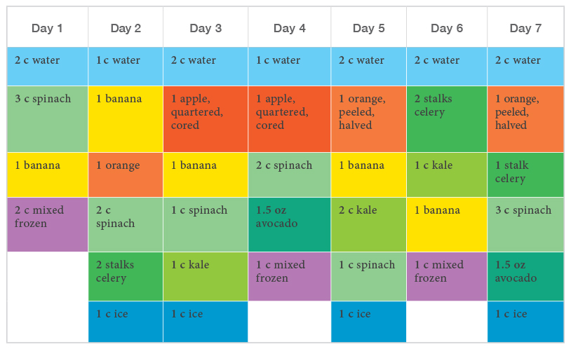 Þó fyrirsögnin hljóði upp á sjö daga safakúr er ekki þar með sagt að græni morgundrykkurinn innihaldi næg næringarefni fyrir daginn. Þvert á móti er undirstaða heilbrigði meðal annars reglubundið mataræði, sem samanstendur af nokkrum máltíðum á dag. Sjö daga safakúrinn er einfaldlega frábær leið til að hefja nýjan dag – með íðilgrænni vítamínsprengju sem sindrar af heilbrigði.
