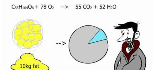 Hið rétta er að mestur hluti fitu sem mannslíkaminn brennir yfirgefur líkamann gegnum útöndun, eða sem kolvtvísýringur. Fitan umbreytist nefnilega í koltvísýring og gufar upp, út í andrúmsloftið.
