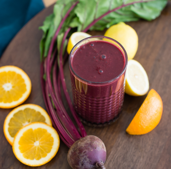 Rauðrófur og rauðrófustilkar, meira að segja grænu blöðin sem vaxa upp úr rauðrófunni sjálfri eru afeitrandi og stútfull af næringarefnum. Þá eru sítrusávextir rómaðir fyrir afeitrandi eiginleika sína og það er alger vitleysa að rauðrófur bragðist eins og mold, því galdurinn er fólginn í því að afhýða rauðrófuna áður en safinn úr henni er unninn í boost.