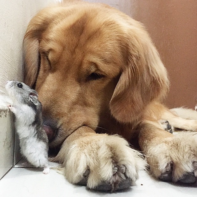 Hann heitir Bob og er af tegundinni Golden Retriver. Blíðlyndur risi sem býr, ásamt eiganda sínum – örsmáum hamstri og átta litlum páfagaukum og finkum í brasilísku borginni Sao Paulo. Krúttlegur með eindæmum, rísandi Instagram stjarna og er með sína eigin Facebook síðu.