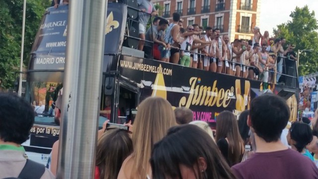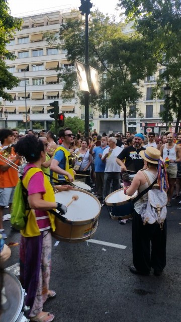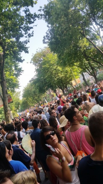Það fyrsta sem rak fyrir augu mín voru litir regnbogans sem bar við himinn og fánarnir sem fólkið klæddist. Ég man ekki lengur hvað stóð á skiltunum sem þau báru, fallega fólkið sem skipaði gönguna. En ég man að slagorðin voru þróttmikil. Ég man hvað þau voru hnarreist. Seinna heyrði ég að um tvær milljónir manns hefðu tekið þátt í Gleðigöngunni í Madrid nú í ár. Ég þar á meðal og barnungur sonur minn. Sem stóð og gapti, undrandi á svip.