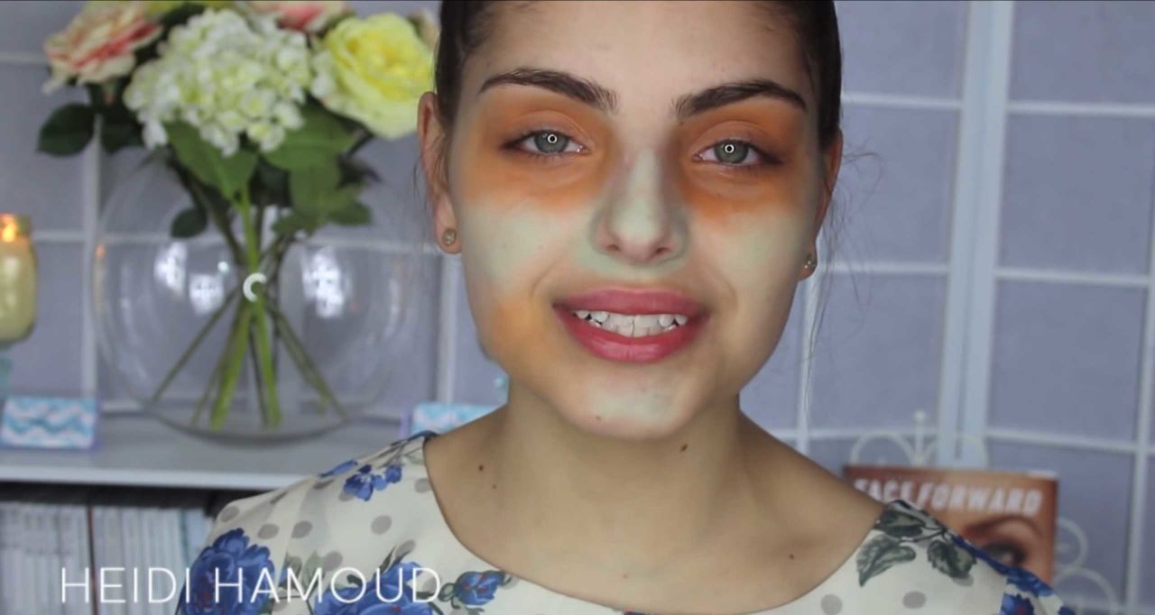 Þetta er einmitt sú aðferðafræði sem förðunarfræðingurinn og myndbandsbloggarinn Heidi Hamoud styðst við þegar hún vill afmá ummerki um bauga, sýnilegar æðar í andlitinu og jafnvel hvimleiðan rósaroða í kinnum.