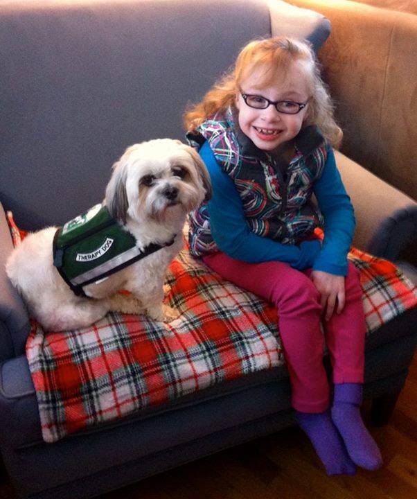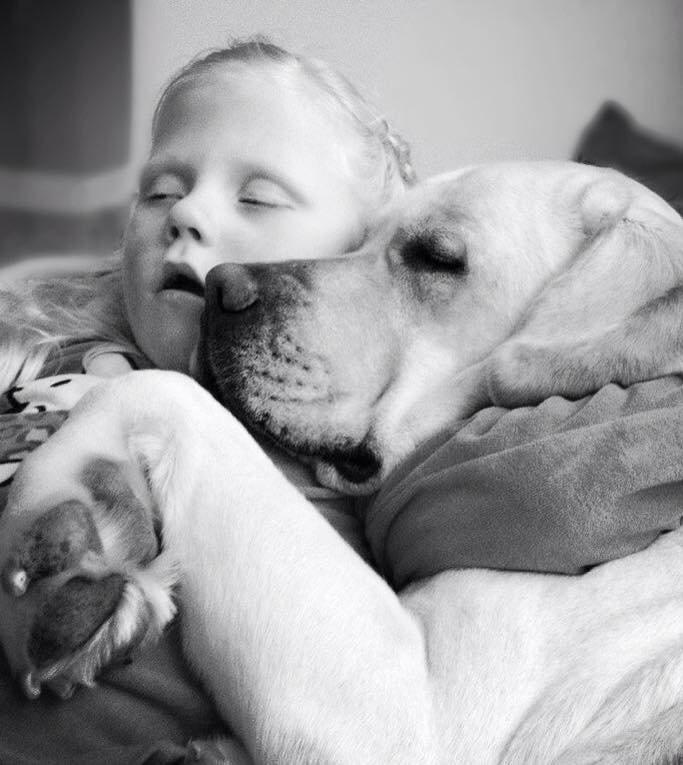 Mynd 1: Ísabella Eir og Loki. Loki dregur úr svefnörðuleikum Ísabellu sem þjáist af Smith Magenis heilkenni.