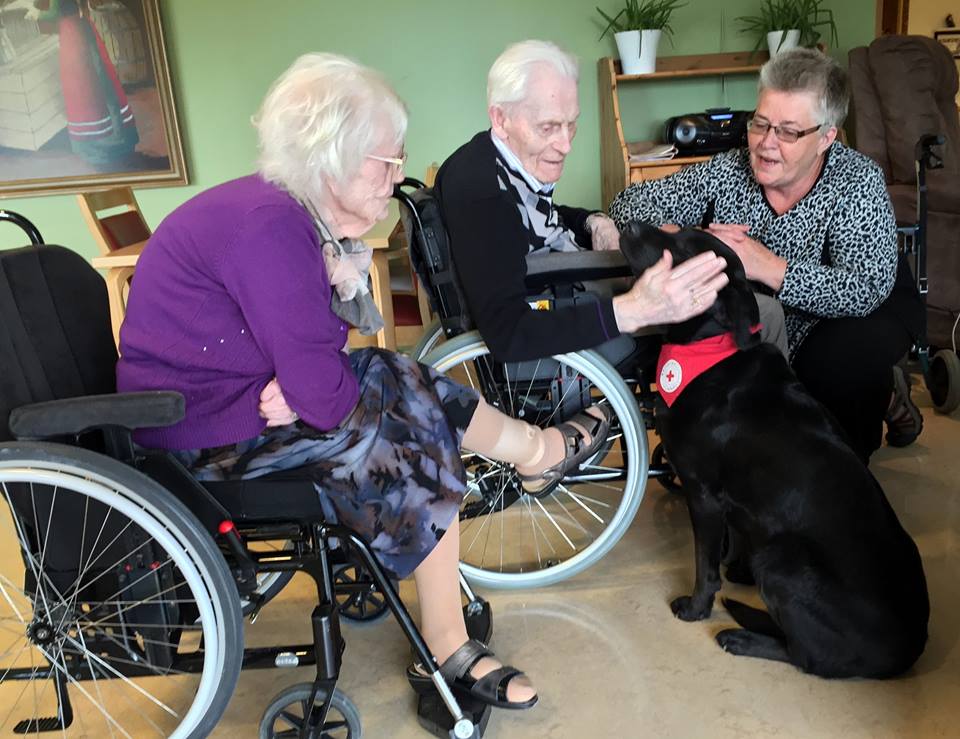 Heimsóknarvinur á vegum Rauða kross Íslands nýtur sín vel innan um áhugasama eldri borgara