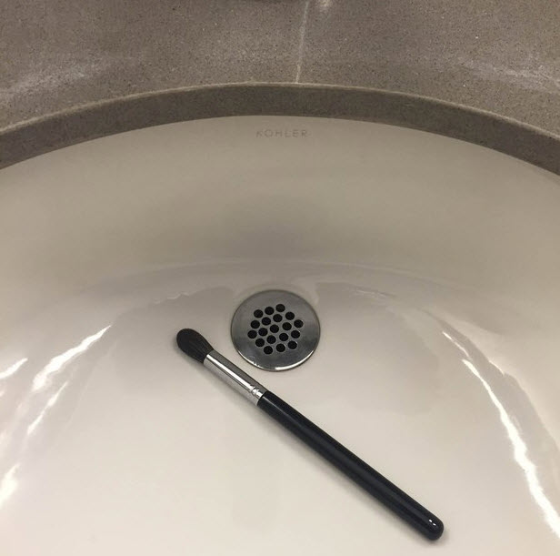 Þegar þú ert að mála þig en ert ekki búin og pensillinn dettur í vaskinn og blotnar