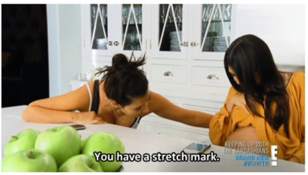 • Khloé tók spjall við systur sínar í smáatriðum um viðhald kynfæra sinna. Hún segist vera með „línu“ en að Kim sé algerlega ber, fjarlægt með layser… Kourtney er hinsvegar loðin.