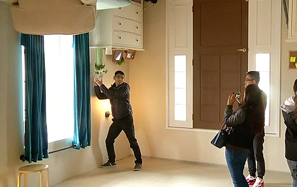 Húsið þar sem ALLT snýr öfugt: Þriggja hæða hún hefur nú verið opnað almenningi í Taipei, Taiwan. Þar flykkjast að hundruðir ferðamanna til að upplifa eitthvað alveg nýtt – því þar snýr allt öfugt, stólar, borð og jafnvel baðkar og salerni!