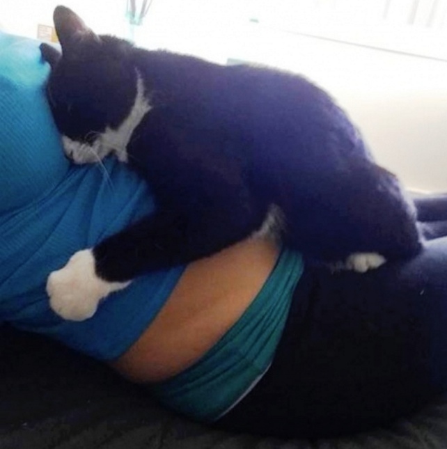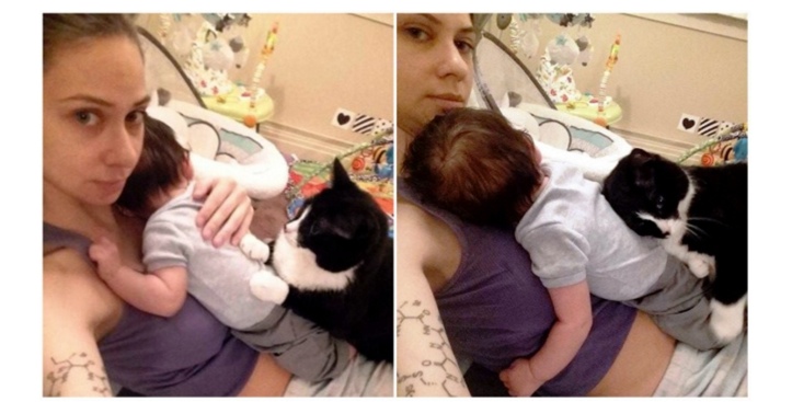 Panda er tveggja ára kisa sem leit strax á það sem hlutverk sitt að passa ófætt barn eiganda síns Liel: „Þegar ég varð ólétt fór Panda að elta mig út um allt og leggjast á magann á mér. Það var eins og hún væri að vernda barnið.“
