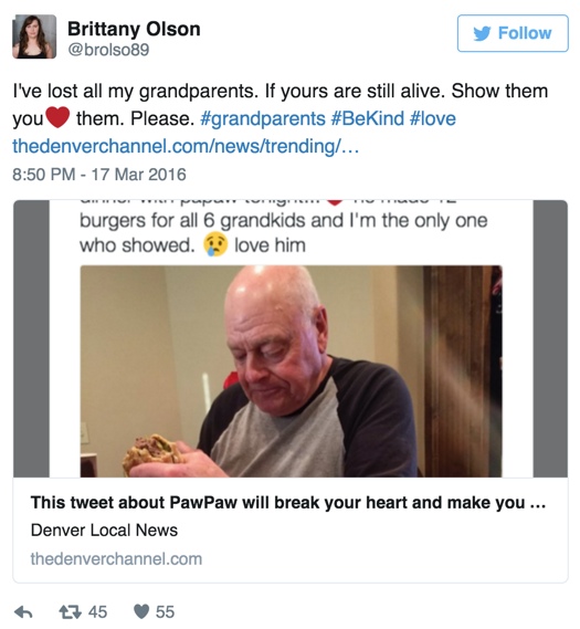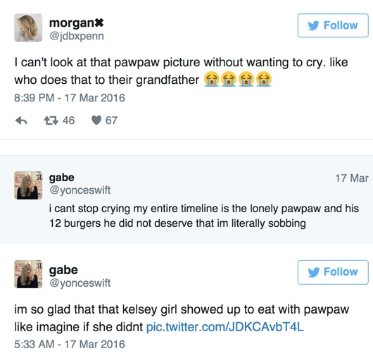 Elsku kallinn…maður fær bara tár í augun. Afi eða „Papaw“ eins og barnabarnið hans Kelsey Harmon kallar hann tvítaði mynd sem hefur farið út um allan heim í dag. Hún útskýrir: