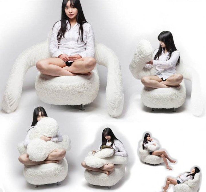 Þegar þig vantar knús er þetta akkúrat sófinn sem mun bjarga því. The Free Hug Sofa er hannaður af Eun Kyoung Lee og lofar hún að hann muni hugga þig og veita þér stuðning…þó þú hafir engan annan. Frábær hönnun!