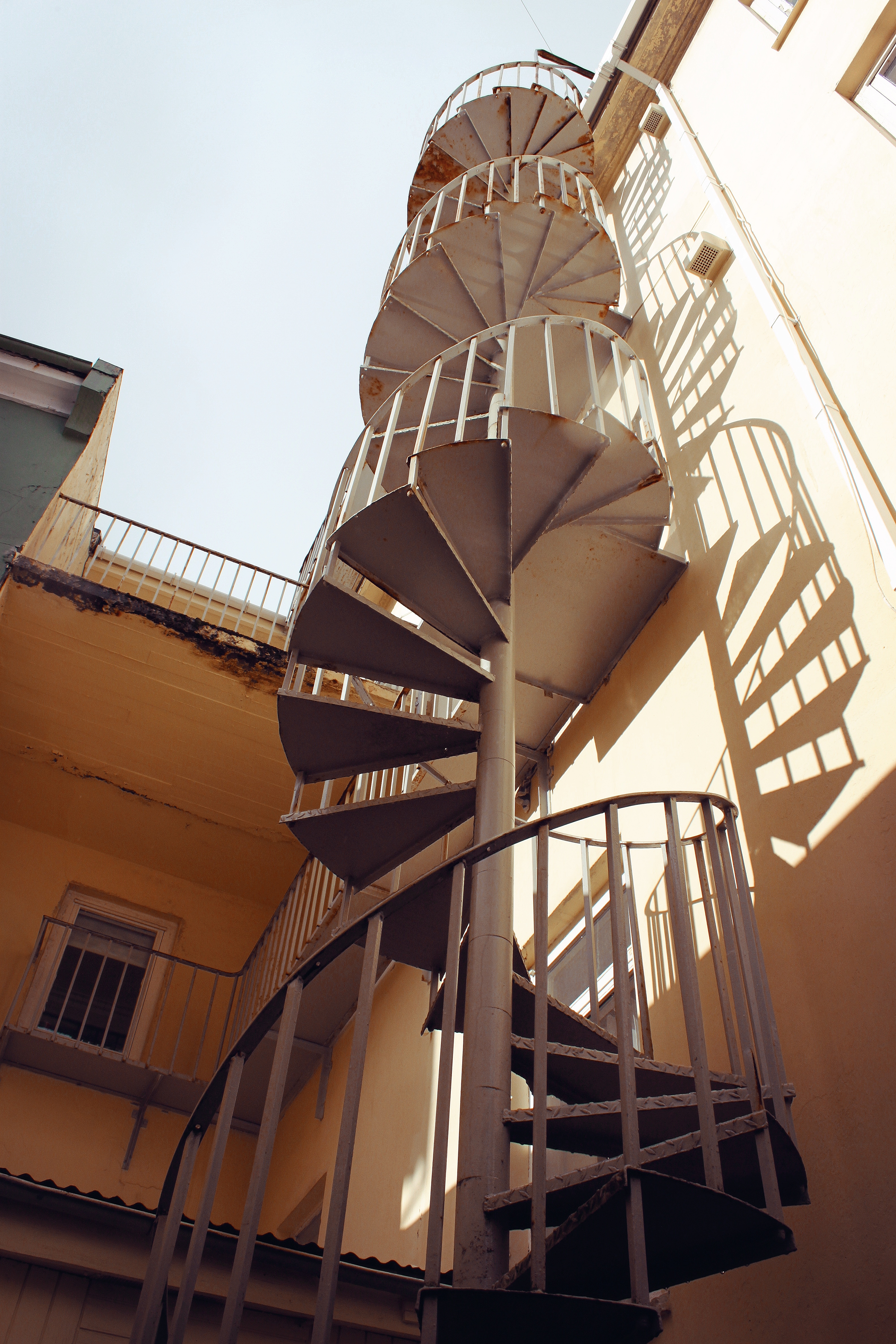 Brunastigi í portinu – flóttaleið. Þegar húsið var stækkað var stiganum bætt við.