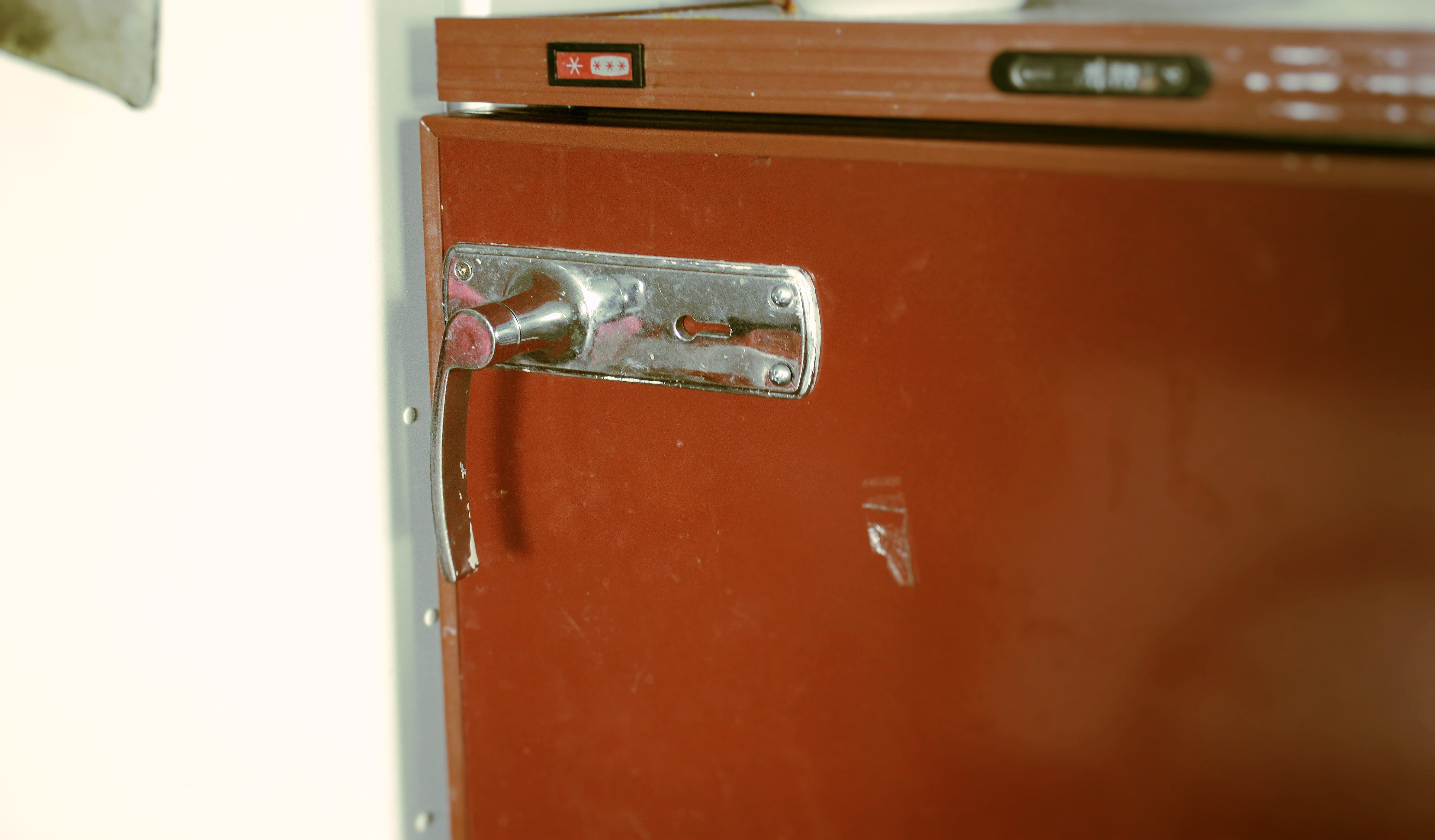 Hurðarhúnninn á ísskápnum. „Þetta virkar vel sem handfang, það hefur einhver reddað sér svona á sínum tíma!” segir Ingvi.