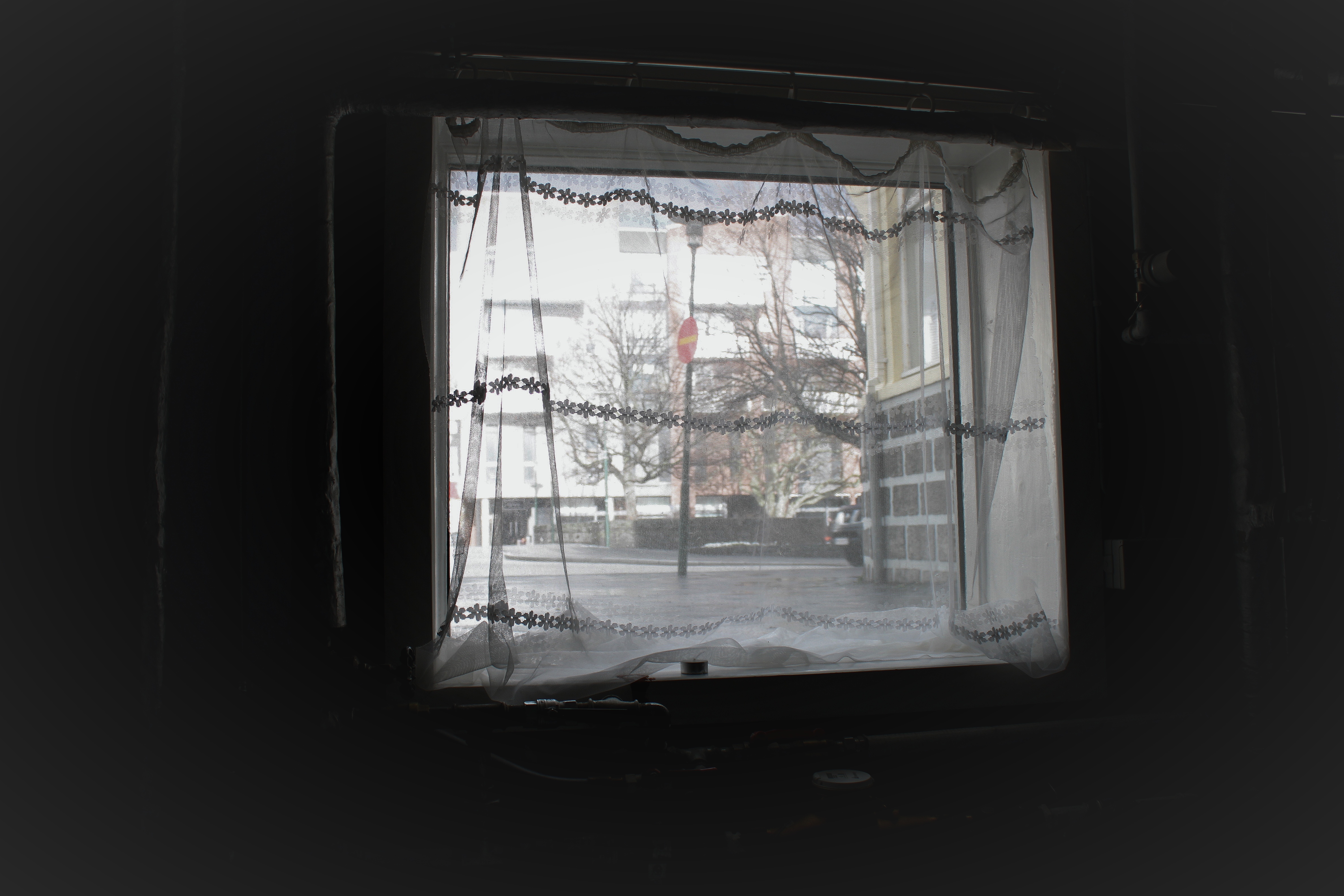 Inni í þvottahúsinu – séð út á Kirkjustræti.