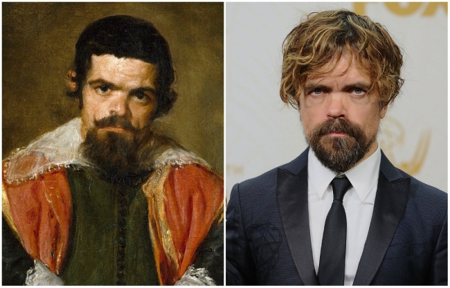 Hirðfíflið Sebastián de Morra og leikarinn Peter Dinklage