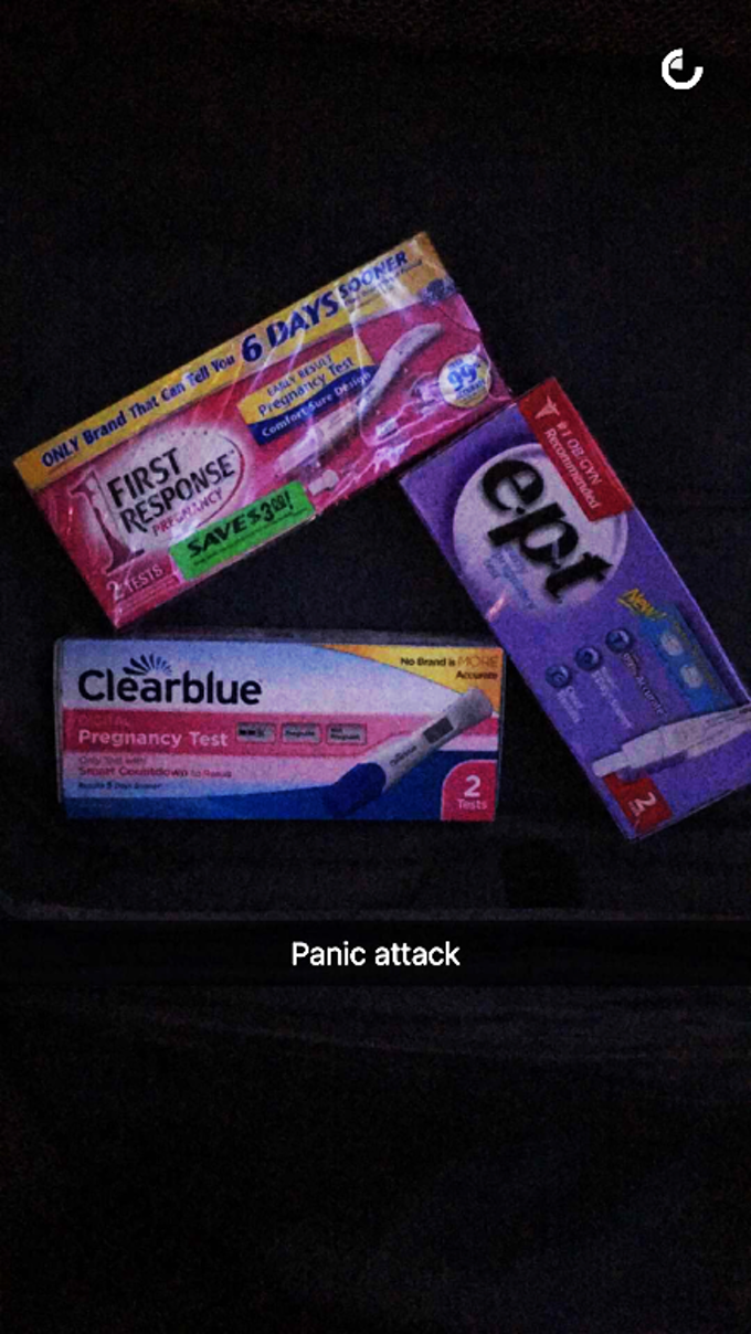 Birtir hin 35 ára raunveruleikastjarna mynd af óléttuprófinu á Snapchat en hún ku hafa tekið það um borð í flugvél þar sem hún var ofurstressuð, en prófið var neikvætt þannig hún sagði: „So, no big deal.“