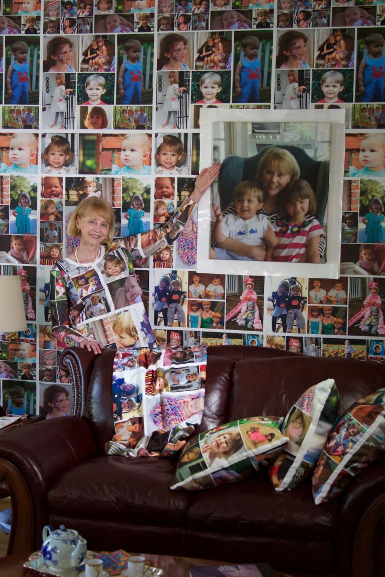 Fékk Carmen hugmyndina að skreyta húsið sitt með þeim sem hún elskar mest þegar hún flutti. Hún leitaði að hentugu veggfóðri en fann ekkert. Datt henni þá í hug að hanna sitt eigið. „Ömmustrákurinn minn og ömmustelpan eru mitt stolt og gleði. Af hverju ekki að skreyta heimilið með andlitunum þeirra?“ spurði hún sig sjálfa.