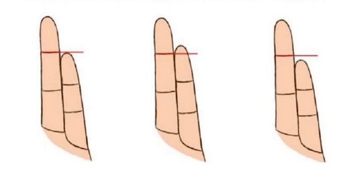 Skoðaðu myndina vandlega: Hvernig er staða litla fingurs miðað við baugfingur og löngutöng? A-B eða C? Ef þú tengir við A þýðir það að þú sýnir ekki miklar tilfinningar og vilt að fólk telji þig sterka/n og svala/n. Þrátt fyrir útlitið ertu samt afar tilfinningaríkur einstaklingur. Þú ert með vissan „front“ en um leið og fólk kynnist þér ertu virkilega indæl manneskja.