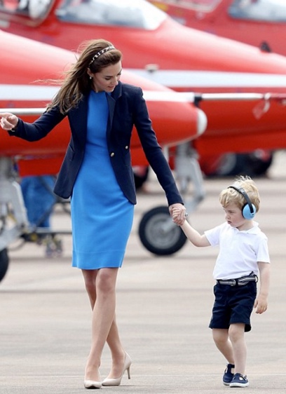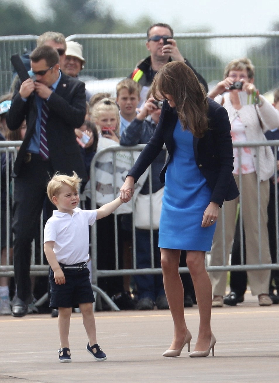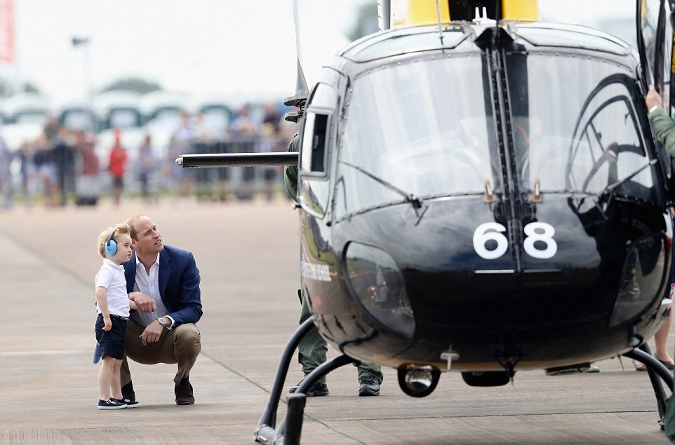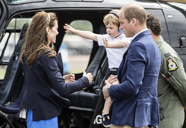 Fjölskyldan heimsótti flugsýnininguna Royal International Air Tattoo sem er stærsti viðburður sinnar tegundar í heimi. Georg tók líka smá bræðiskast þegar mamma hans, Kate, var ekki komin nógu snemma að taka hann upp og láta hann fá heyrnartól. Georg verður þriggja ára í þessum mánuði.