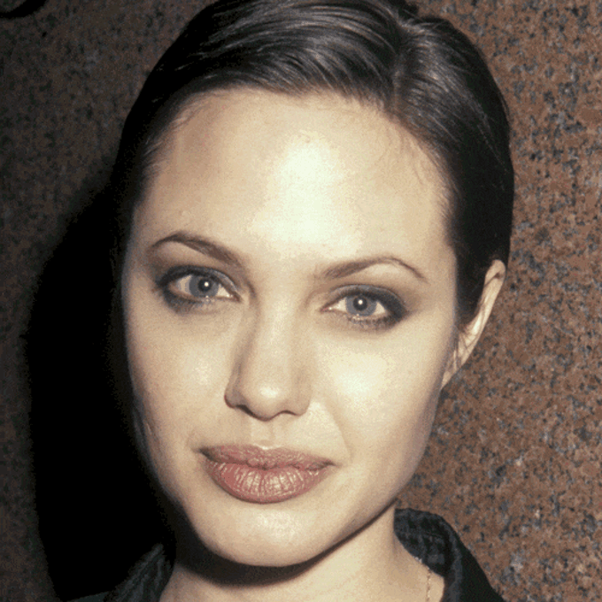 Nokkuð augljóst er að nebbinn á Angelinu Jolie hefur eitthvað skroppið saman með árunum