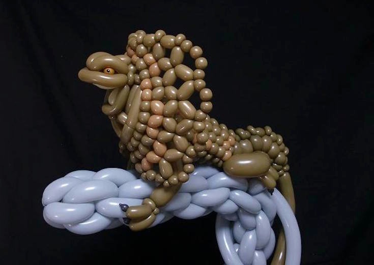 Manstu eftir blöðruhundinum sem trúður eða götulistamaður bjó til handa þér eða barninu þínu? Japanskur listamaður að nafni Masayoshi Matsumoto hefur nú enduruppgötvað nýja tækni til að búa til listaverk úr blöðrum! „Ég hef alltaf elskað listaverk með blöðrum,“ segir hann. Það tók hann þó fjögur ár að fullkomna tæknina. Myndirnar tala sínu máli: Sjáðu…engin límbönd eða nokkuð annað er notað…bara blöðrur!