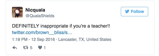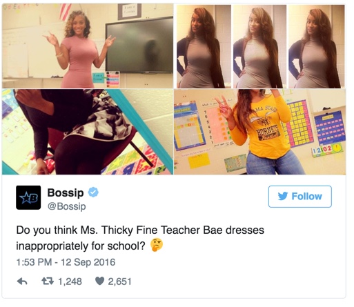 Paris hafði sett nokkrar myndir af sér á Instagram þar sem hún var hamingjusöm að kenna í skólastofunni sinni. Þurfti einhver að benda á myndirnar á Twitter og margir höfðu á orði að þetta væri nú ekki klæðnaður sem ætti að sjást í kennslustofu barna.
