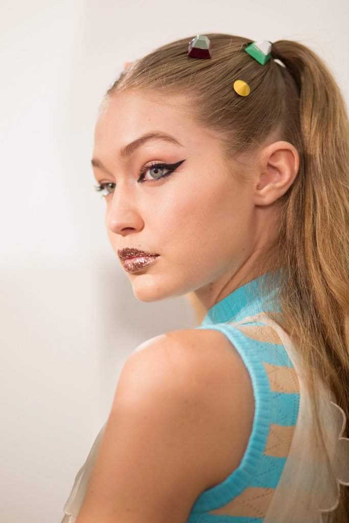 Gigi Hadid með glimmer. Cindi Lauper var þekkt fyrir slíkt á 9. áratugnum