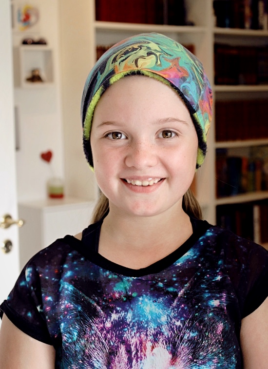 Berglind notar tvenns konar efni: Annars vegar áprentað bómullarjersey sem er svipað efni og í stuttermabolum. Hins vegar handlitaðan bambusvelúr sem er yndislega mjúkur og kósí. Hann litar hún sjálf í baðinu hjá sér og verður að segjast eins og er að henni tekst afar vel upp. „Það er ótrúlega gaman að prófa sig áfram og nota nýjar aðferðir,“ segir hún brosandi.