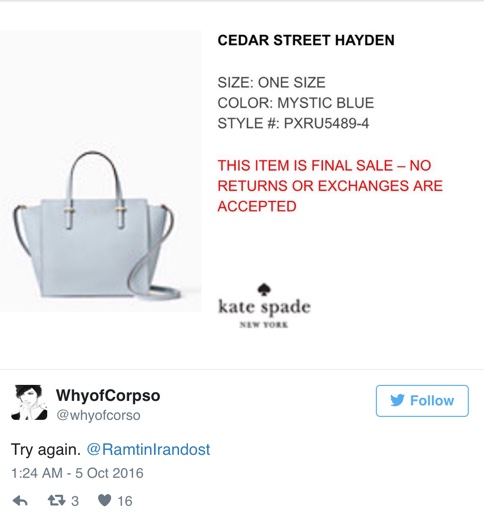 Æ, nei…ekki aftur! Margir muna eftir kjólnum sem vakti upp spurningar hvernig hann væri á litinn. Nú er komin upp önnur umræða um tösku frá Kate Spade. Er hún hvít eða blá? Við erum sannfærðar um að hún sé hvít, en meira að segja framleiðandinn segir að liturinn kallist „mystic blue…“