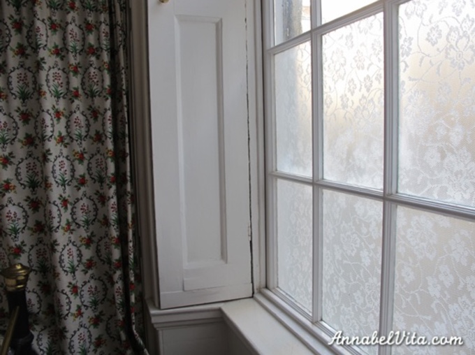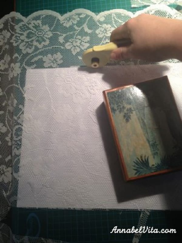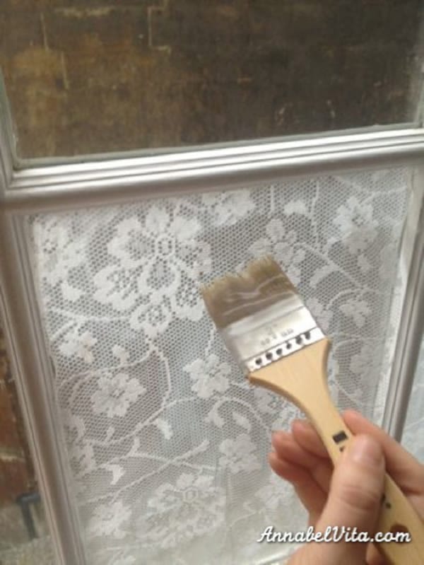 Annabel fann afskaplega fallega blúndu (auðvitað er ódýrast að nota gamlar gardínur þó!) og svo bjó hún til „galdralím“ til að halda henni á sínum stað.