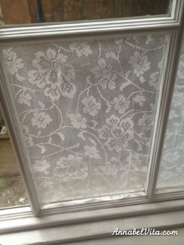 Filmur í gluggana eru afskaplega vinsælar þessa dagana. Það vita þó þeir sem reynt hafa að þær eru engan veginn ódýrar. Við rákumst á þetta ráð hjá konu að nafni Annabel Vita. Hún vildi halda birtunni í svefnherberginu sínu en vildi ekki að það sæist jafn mikið inn. Hún hafði haft límfilmu í glugganum en fannst hún „leiðinleg“ þannig hún ákvað að horfa til efnis sem hafði löngum heillað hana: Blúndu!