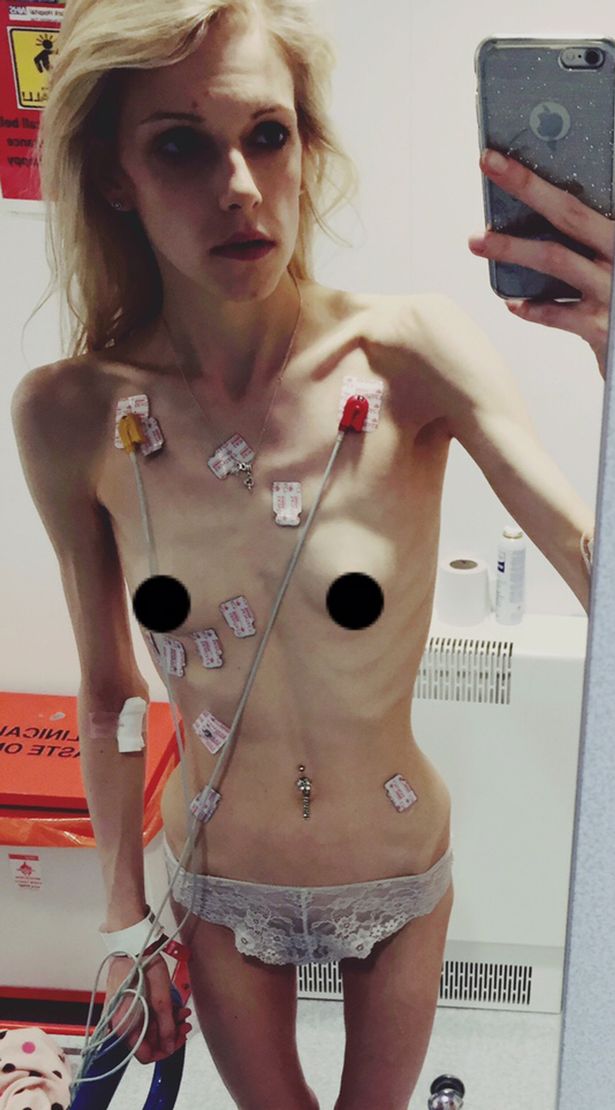 Læknar sögðu henni að ef ekkert yfir að gert myndi hún ekki lifa lengi. Jodie sem er 18 ára gömul frá Hampshire í Bretlandi innbyrti aðeins 20 hitaeiningar á dag, stundaði líkamsrækt á nóttunni og var í lokin aðeins 34 kíló. Ef hún fór í bað þurfti hún að liggja á þremur handklæðum og gat hún ekki notað salerni sársaukalaust þar sem hún var svo beinaber.