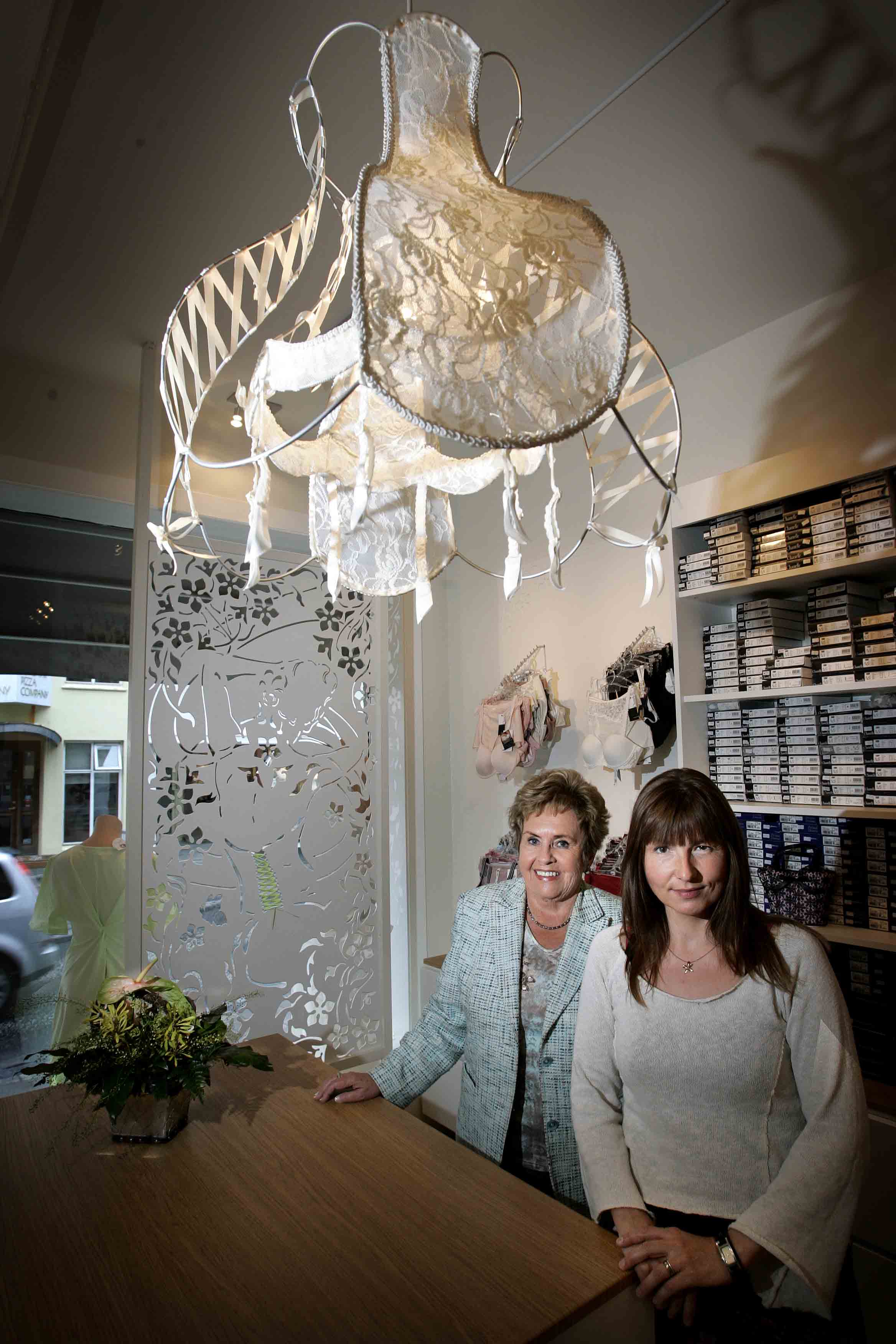 Árið 2006 flutti verslunin að Laugavegi 82 og var Guðrún Lilja Gunnlaugsdóttir innanhúshönnuður fengin til að hanna allar innréttingar búðarinnar, þar á meðal þessa glæsilegu ljósakrónu með tilvísun í korselett fyrri tíma, sem sjá má á myndinni að ofan.