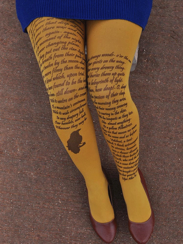 Hvernig væri að klæðast texta Halldórs Laxness í formi sokkabuxna? Nú geta bókaunnendur glaðst því afar djarfar sokkabuxur hafa nú litið dagsins ljós. Fyrirtækið sem hannar buxurnar kallast My Modern Met Selects, og bæði getur þú fengið sokkabuxur með ódauðlegum textum Edgar Allan Poe, Jane Austen eða Emily Dickinson. Buxurnar kosta frá 21-29 dollurum en einnig er hægt að sérpanta. Kannski maður ætti að panta fyrir jólin – fyrir bókaunnandann sem á allt?
