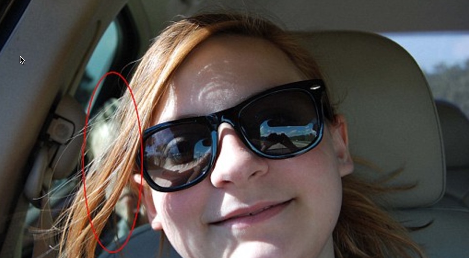 Melissa Kurts, 48 ára, var að keyra dóttur sína Harper (13 ára) á fegurðarsamkeppni. Þær búa í Flórídaríki í Bandaríkjunum. Dóttur hennar leiddist í bílnum en þetta var 45 mínútna akstur og fór að taka sjálfsmyndir af sér. Þegar móðir hennar skoðaði myndirnar var einhver á myndinni sem átti ekki að vera þar: Ungur drengur í aftursætinu sem virtist teygja sig í áttina að Harper.