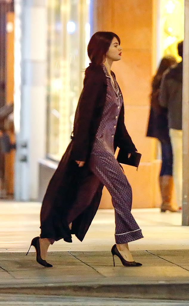 Sjónarvottur segir að hin 24 ára söngkona hafi fengið sér að borða með vini á mexíkóskum stað áður en hún fór og verslaði í nokkrum búðum og svo fór hún í stúdíóið sitt. Selena hefur gert þetta nokkrum sinnum (sjá myndirnar) Árið 2015 var hún í dökkbláum náttfötum í París, rauðum hælum og alveg svakalega flott!
