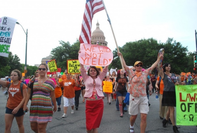 Stuðningsfólk fóstureyðinga í Austin, Texas þann 8.júlí 2013. (AP/The Daily Texan)