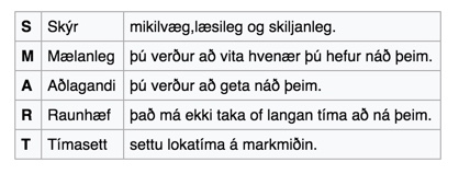Til að gera heitið geranlegt, svo að segja á það að vera SMART: