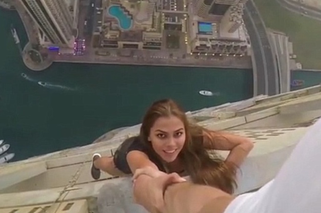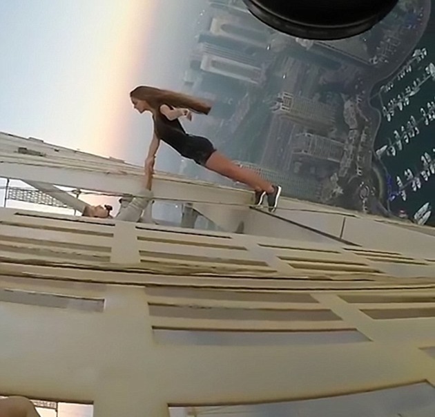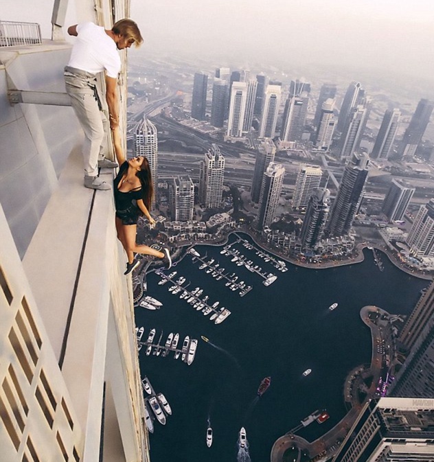 Allt fyrir hina fullkomnu mynd á Instagram: Rússnesk Instagramdrottning, fyrirsætan Viki Odintcova hætti lífi sínu fyrir eina mynd á Instagram þar sem hún hékk án neyðarbúnaðs uppi á efstu hæð skýjakljúfs, Cayan turninum í Dubai. Viki lenti þó í lögreglunni og yfirheyrslu hvað uppátækið ætti eiginlega að þýða. Slapp hún með skrekkinn og fékk áminningu og hún þurfti að lofa að gera þetta aldrei aftur og skrifaði undir yfirlýsingu þess efnis.
