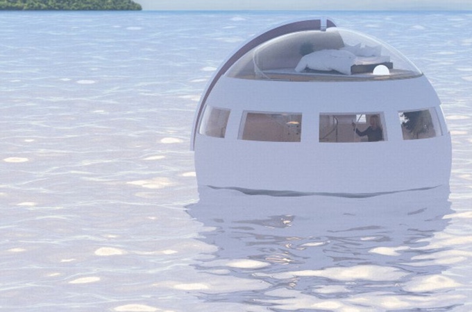 Þessi framtíðarhönnun gefur sumarfríinu alveg nýja merkingu. Hótelið er í laginu sem fullkomin kúla sem forrituð er þannig að hún flýtur yfir hafið til ákveðinnar eyju í kerfinu. Gestirnir njóta vaggandi alda (best er auðvitað að þjást ekki af sjóveiki) áður en þeir vakna á gullfallegri eyju. Þá hafa þeir notið stjörnubjartrar nætur eins og sjá má á myndinni.
