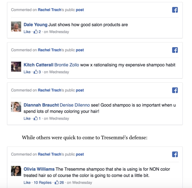 Rachel Trach setti myndband á Facebook síðuna síðna til að sjá hvernig áhrif sjampó hefur á litað hár. Notaði hún Unite 7 Seconds Shampoo sem kostar um 2500 kr og Tresemmé’s 24 Hour Body Shampoo, sem kostar um 700 kall.