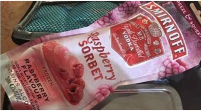 Móðir nokkur í Queensland, Ástralíu, sagði í Facebookfærslu að hún hefði óvart sent fimm ára dóttur sína með áfengi í skólann. Var um að ræða poka með frosnum hinberjavodkakokteil sem var afar líkur frosnum poka af ávöxtum sem dóttur hennar líkaði vel. Auðvelt er að sjá af hverju – pokinn er glaðlegur á að líta!