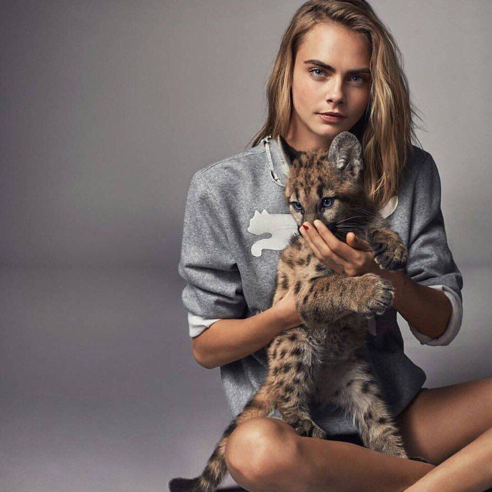Súpermódelið Cara Delevingne hefur verið í forsvari fyrir margar auglýsingaherferðir. Þessi nýjasta, fyrir Puma, hefur vakið verðskuldaða athygli því þetta er auðvitað ofur-krúttlegt! Cara situr fyrir með alvöru fjallaljónum (e. Puma) í flottum íþróttafötum. Virkilega flott, finnst þér ekki?