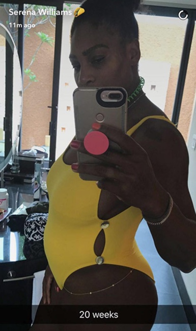 Serena Williams var að tilkynna að hún gengur með sitt fyrsta barn og er komin 20 vikur á leið. Á hún von á því með unnusta sínum Alexis Ohanian. Tennisdrottningin póstaði meðfylgjandi mynd eingöngu klædd gulum sundbol og sagði einfaldlega: „20 vikur.“ Aðdáendur voru fljótir að taka við sér og hamingjuóskum rigndi yfir hana.