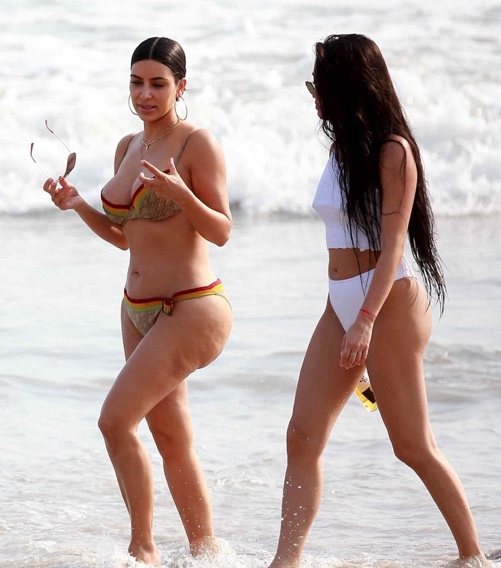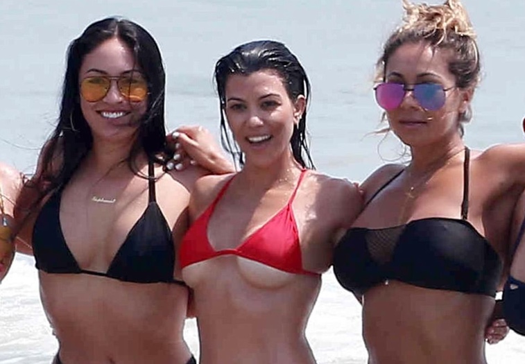 Kim og Kourtney fóru til Mexíkó á dögunum og nutu sín á ströndinni. Meðfylgjandi myndir sýna systurnar og fullt af vinkonum ásamt Stephanie Sheppard, sem betur er þekkt sem Steph Shep, en hún er persónulegur ráðgjafi Kim. Steph naut þess að fá sér svalandi bjór, en Kim drekkur lítið og sleppti því. Kourtney var í fínu formi eins og sjá má og var ekki feimin í bikini! Khloe, litla systir Kim, lét frá sér fara einmitt fyrir nokkrum dögum að Kim væri með draumalíkamann og hún væri henni fyrirmynd hvað varðaði líkamsrækt.