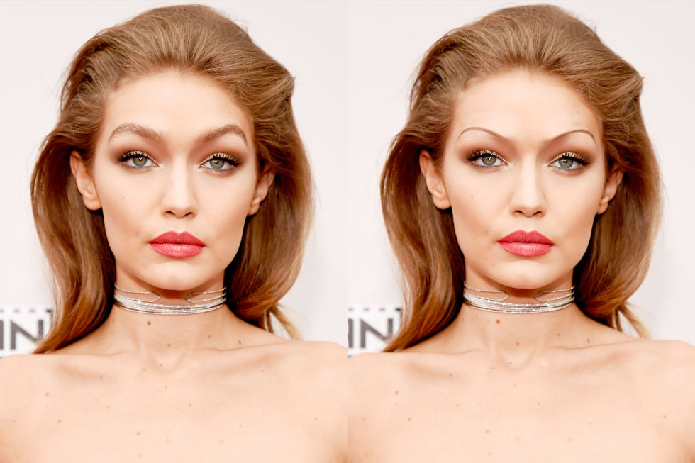 Þetta er frekar skondið! Einhver snillingurinn hefur nú deilt myndum sem átt hefur verið við með myndvinnsluforriti og minnir okkur á hvernig augabrúnatíska tíunda áratugarins var…afar mjóar! Hvar væri Cara Delevigne án sinna brúna? Kíktu á þessar myndir og þakkaðu fyrir að þessi tíska er ekki við lýði í dag…